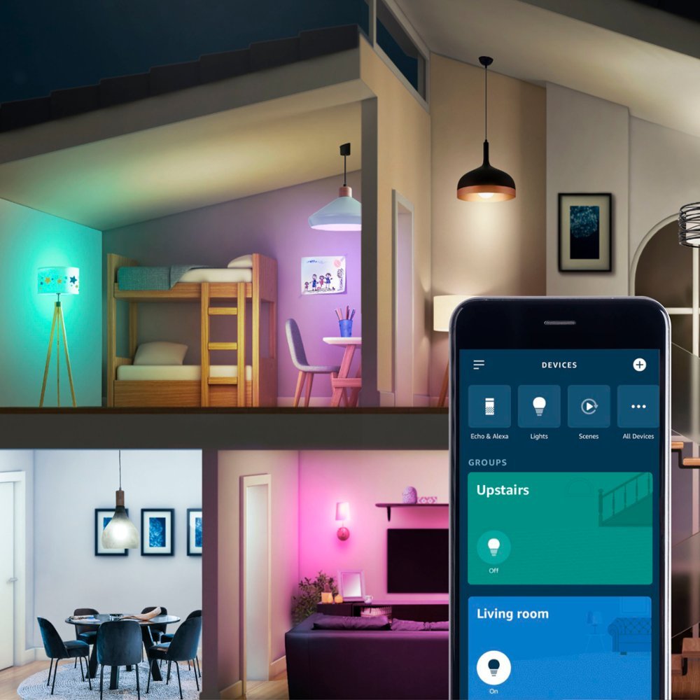 - Turn the color changing light bulb on/off, dim, brighten, set up routines, schedules, and more using the Amazon Alexa App.